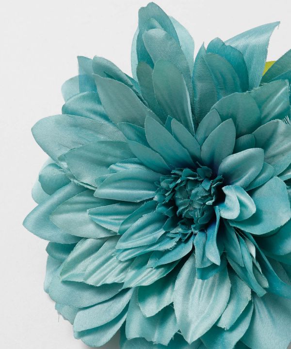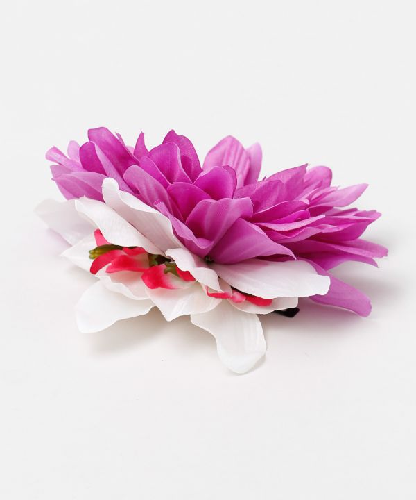 顔回りに華やぎを与える大輪のダリアと2つの小ぶりなシンビジウム。付ける向きを変えるだけで、違った印象を楽しめます。
