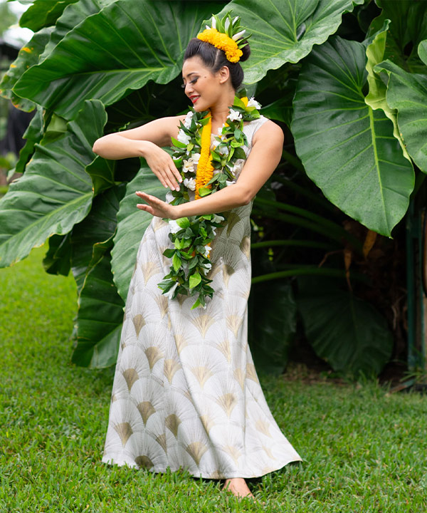 マイレにチューブローズを絡ませた美しいレイ。ロングのオープンタイプで様々なアレンジでご使用いただけます。