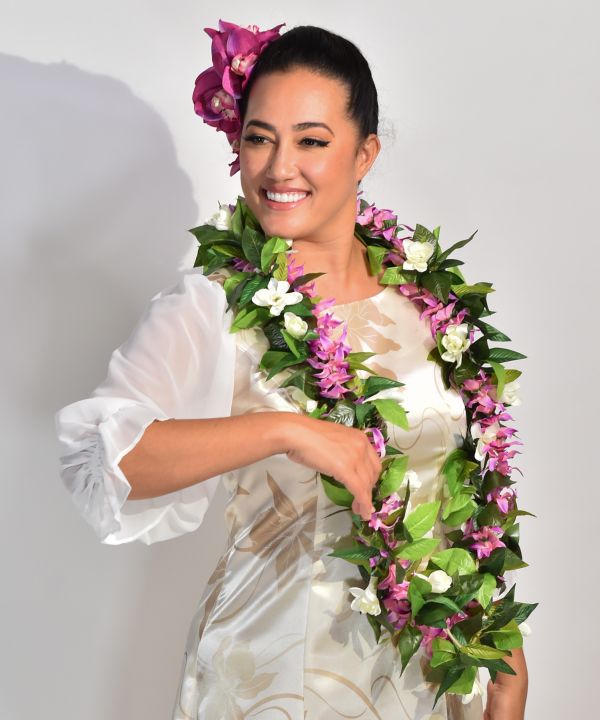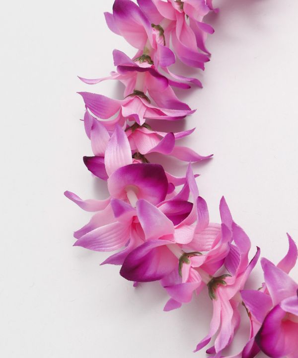 生花のような色合いの可憐なオーキッドをロングレイに仕上げました。重ね着けのアレンジもおすすめです。