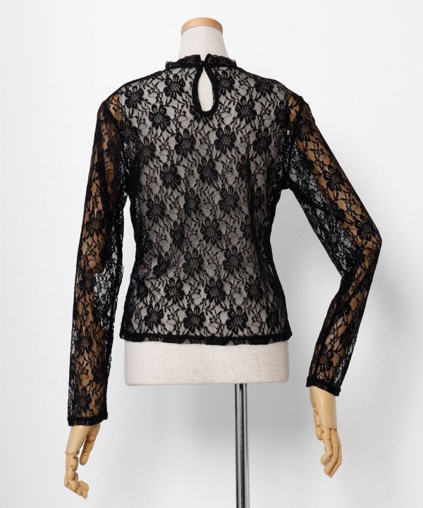 エレガントなアレンジで魅せるプラスワンアイテム。透け感のある繊細なストレッチレースが、肌をより美しく見せるブラウスです。肌の露出をさりげなくカバーしつつも、フラの動きを妨げません。スカートはもちろん、ドレスとのクラシカルなコーディネートもおすすめです。
