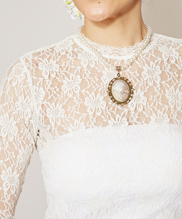 エレガントなアレンジで魅せるプラスワンアイテム。透け感のある繊細なストレッチレースが、肌をより美しく見せるブラウスです。肌の露出をさりげなくカバーしつつも、フラの動きを妨げません。スカートはもちろん、ドレスとのクラシカルなコーディネートもおすすめです。