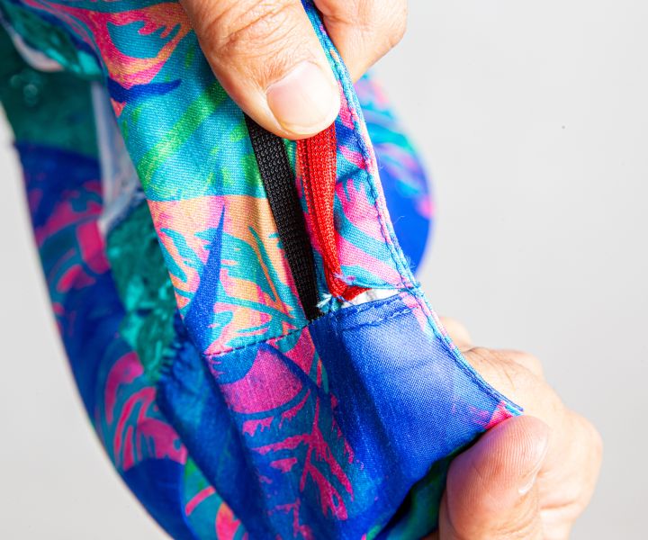ハワイ直輸入の生地を使用しております。色落ちして色が移る恐れがありますので、薄い色のものとの組み合わせには十分にご注意ください。