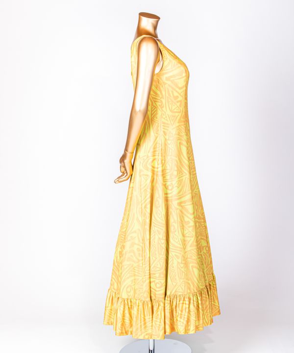 伸縮性のあるグラマラスストレッチでドレープ感もエレガントに仕上がります。 洗練されたデザインのポリネシアンタトゥー柄とスタイル感のあるドレスの組合せでスタイリッシュ感のある1着に。