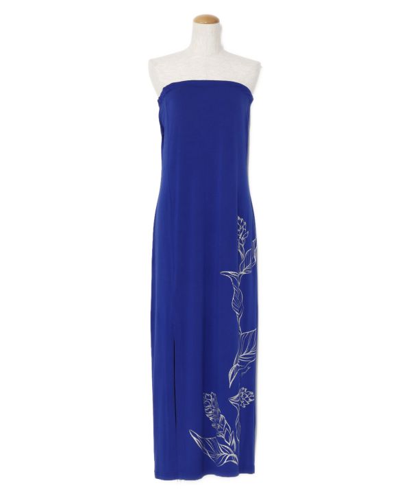 まるでシルクのように身体を優しく包み込む、極上のフィット感。程良い重みがしなやかなドレープを生み出し、優美な舞を演出します。スリット入りのタイトなシルエットのワンピースに41cm丈の同色のケープをセット。襟元はゴム調節可能。ケープの着こなしによって、ベアトップ、ワンショルダーなど、自由自在にアレンジできます。ボディラインに合わせてフィットするしなやかな素材は、柔らかく伸縮性があるので、圧迫感なくお召しいただけます。大胆かつ優雅で躍動感のあるアワプヒ柄のラメプリントがステージに輝きを演出します。