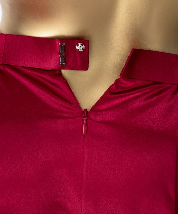華やかな光沢感のあるサテン生地を採用。ソフトな風合いと適度な厚みがあるので、しなやかなシルエットに仕上がります。