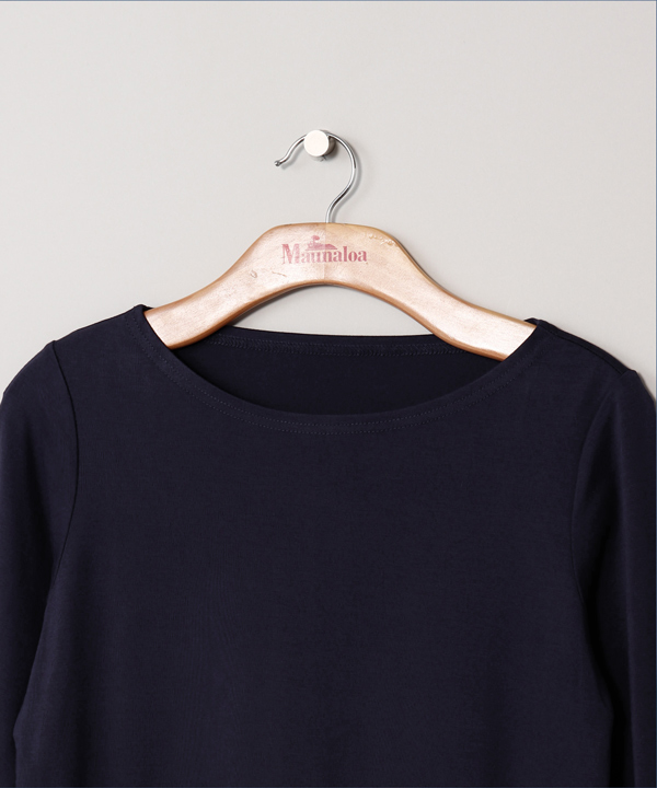 吸湿発熱機能のある生地のインナー。「誠実」の意味を持つ赤いレフアを袖にデザイン。滑らかな触り心地で、ストレッチ性もある生地なのでフラレッスンはもちろん、タウンユースにもおすすめです。※7~8分袖ほどの丈感です。