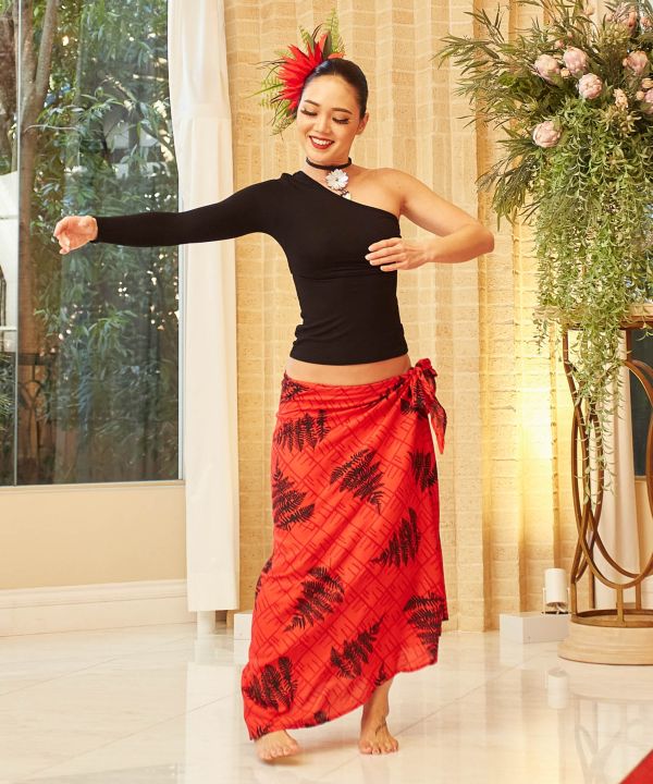 ストレッチ性が高く、やや艶のある生地を使用した本格的なステージ用ワンショルダートップス。右袖・左袖どちらでも着用可能な前後2WAY仕様。カヒコ、アウアナ、アパリマとジャンルを問わず幅広く使える優秀万能アイテム。