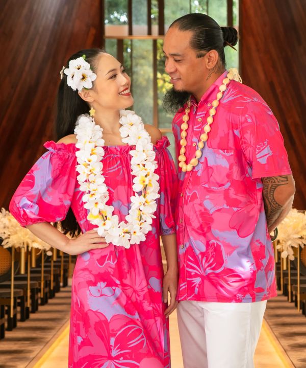 ビビッドカラーを効かせたダイナミックなハイビスカス(アロアロ)のアートワーク。幾重にも重ねた奥深い色層がポリネシアンムードを際立たせます。ヴィンテージ・ムウムウを想わせるノスタルジックさとトレンド感をミックスしたデザインに仕上げました。