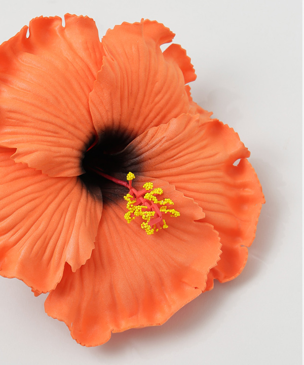 軽くて、リアルで立体的なハイビスカスピック。めしべ部分にはワイヤーが入っており、お好みの形に整えてお使いいただけます。一輪挿しにしても、複数まとめてつけても可愛い、存在感のあるピックです。