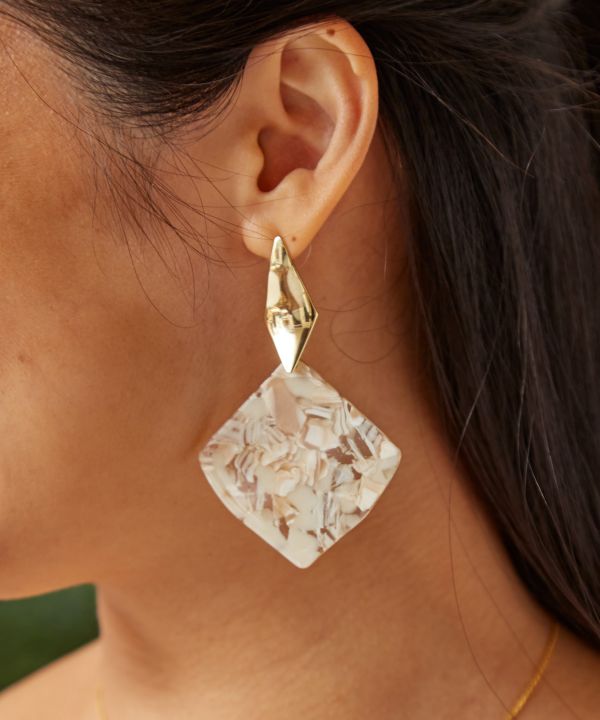 シェルのような模様のアセチ素材を使用したピアス。