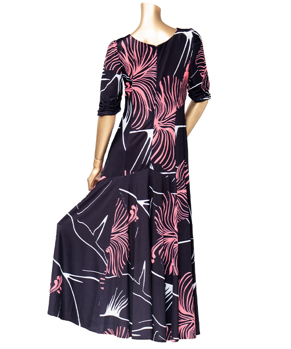 すっきりシルエットのハーフスリーブにギャザーのアクセントを加えました。 ヒップ下の切替えが女性らしいエレガントさを際立たせます。