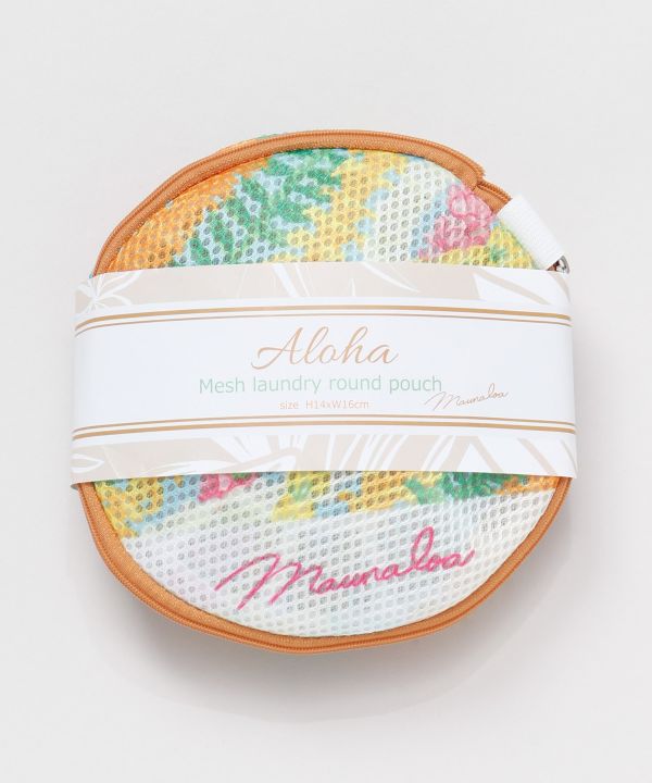 マウナロアオリジナルデザインと人気の'Mighty Su'アートが描かれた、ランドリーポーチ。全面にプリントしたトロピカルなアートが特徴。摩擦によるシワや型崩れを防ぎ、大切なフラアイテムの魅力を保ちます。レイなどを入れて、型崩れ防止や細かい繊維が他の荷物につくのを防ぐためのポーチとしてもおすすめです。紙帯付きで、フラライフを送るオハナへのプレゼントにも最適です。