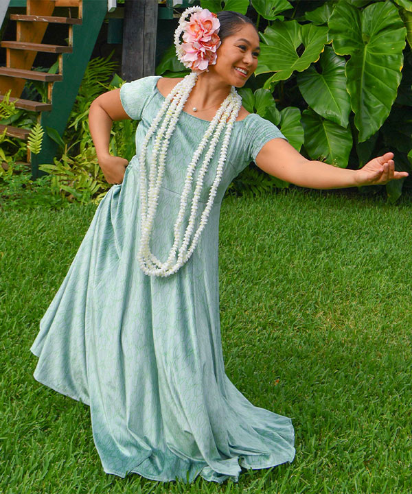 オフショルダーでも着れるデコルテラインの美しいドレス。コンパクトな袖で踊りやすいのもポイント。バスト下の切替えでスタイルアップも期待できます。