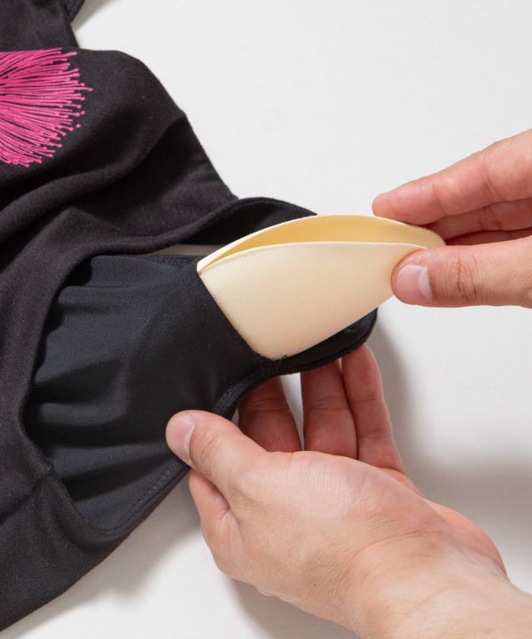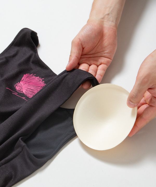 吸湿発熱機能のある生地のカップ付きインナータンクトップ。「誠実」の意味を持つ赤いレフアを背面にデザイン。滑らかな触り心地で、ストレッチ性もある生地なのでフラレッスンはもちろん、タウンユースにもおすすめです。