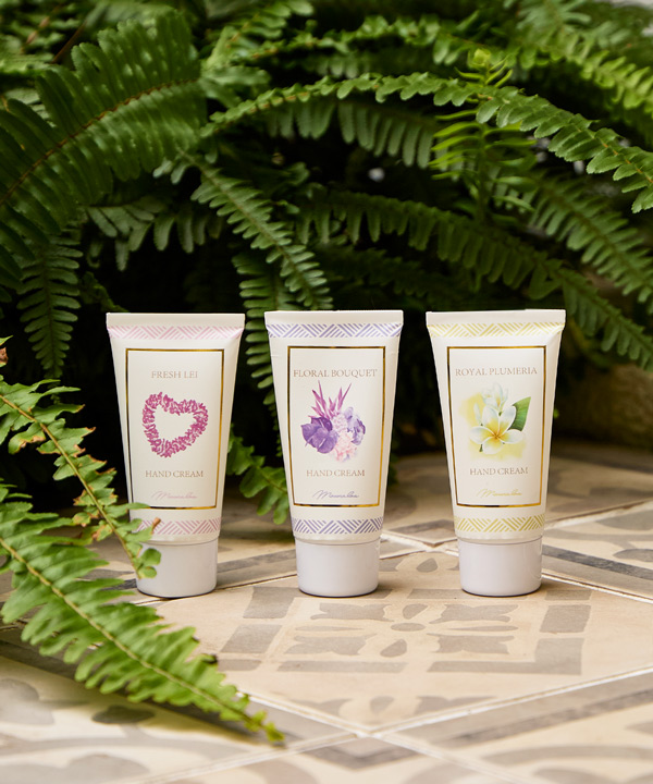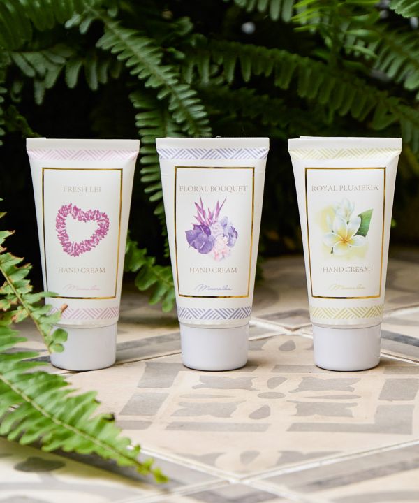 ハワイの花々をイメージした香りが広がるハンドクリーム。保湿成分のココナッツオイル(ヤシ油)配合で、手肌をしっとりなめらかに保ちます。気分に合わせて選べる華やかなパッケージは、ギフトにもおすすめです。