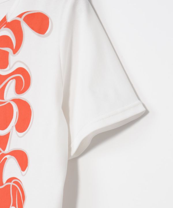 可憐なケニケニのレイを大胆にあしらった華やかなグラフィック。甘く優美な香りを思わせるカラーリングが特徴です。高級超長綿を使用したコットン100%素材で、なめらかな肌触りと優れたストレッチ性を実現。デコルテを美しく見せる衿まわりと、パウにインできる着丈、スリムなシルエットでレッスンにもデイリーにも活躍します。