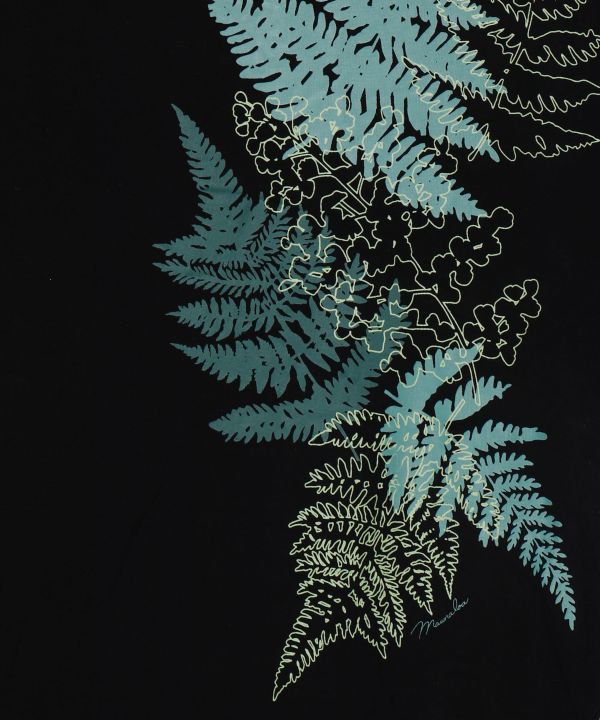 神聖なファーン柄を配したドルマンスリーブトップス。落ち感のあるレーヨン素材とゆったりとした袖が女性らしいシルエットを演出し、二の腕も自然にカバー。前後2way仕様で着こなしの幅も広がり、日常にもレッスンにもおすすめです。