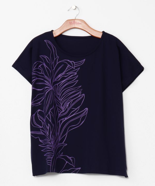 線画で描いたハワイアンリーフを大胆に配置したTシャツ。ひんやりとした肌触りが心地よい接触冷感素材は、なめらかで快適な着心地。ゆったりとしたシルエットが体のラインを優しく包み、日常にもレッスンにもおすすめです。