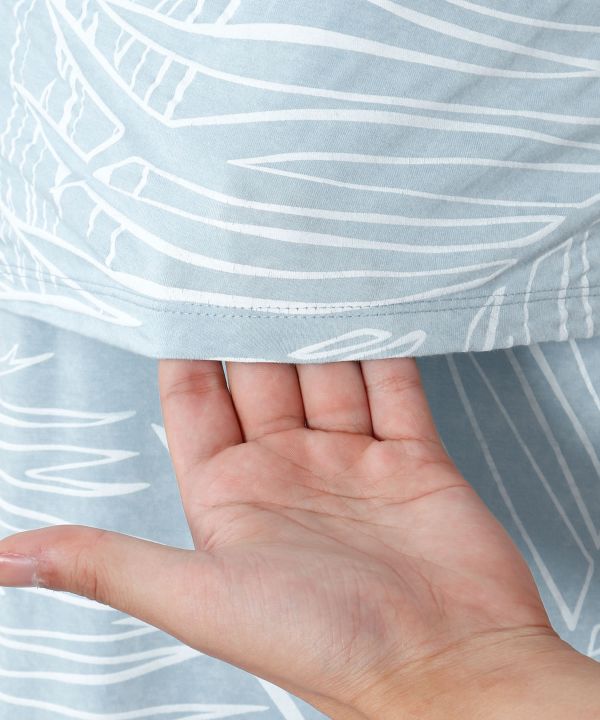 makani(風)を体現するしなやかなワンショルダードレス。美しいドレープが揺れるワンショルダートップとマーメイドスカートを組合せた汎用性の高いセットアップスタイル。アップテンポな曲からスローテンポの曲までこなせるデザインです。奥行きのあるムラ染め調のベースに軽やかな風にそよぐパームリーフをプリントしました。お手持ちのアイテムと組替えてアレンジコーデがお楽しみいただけます。