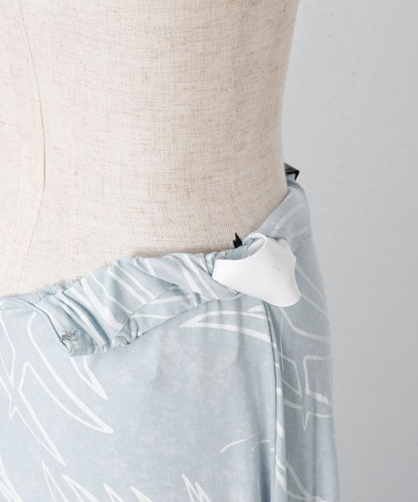 自由なスタイルでHulaを楽しむニュースタイルドレス。ミニマムタイトなシルエットのトップスと、贅沢なボリュームシルエットが美しいパンツを組合せた汎用性の高いセットアップスタイル。アップテンポな曲からスローテンポの曲までこなせるデザインです。奥行きのあるムラ染め調のベースに軽やかな風にそよぐパームリーフをプリントしました。お手持ちのアイテムと組替えてアレンジコーデがお楽しみいただけます。