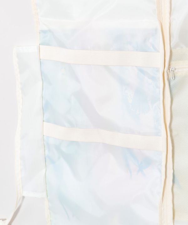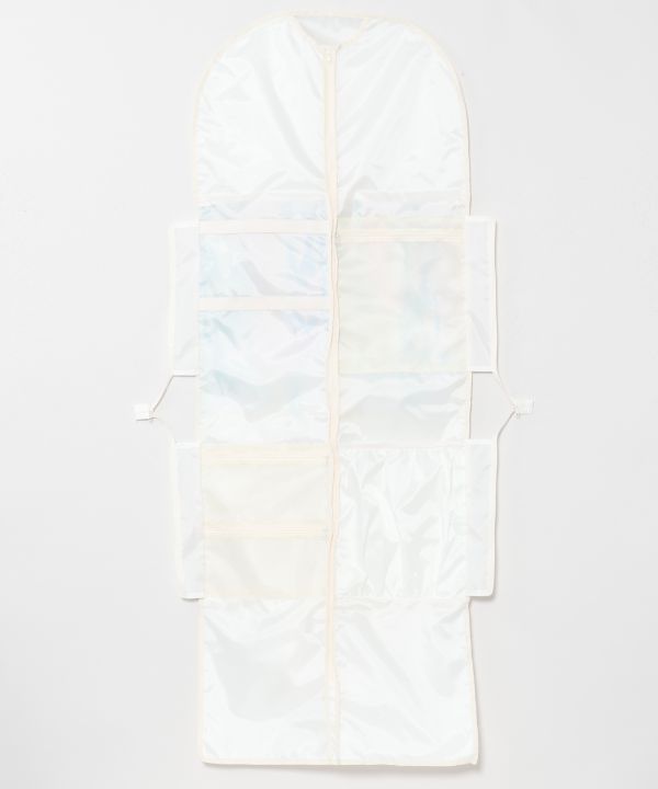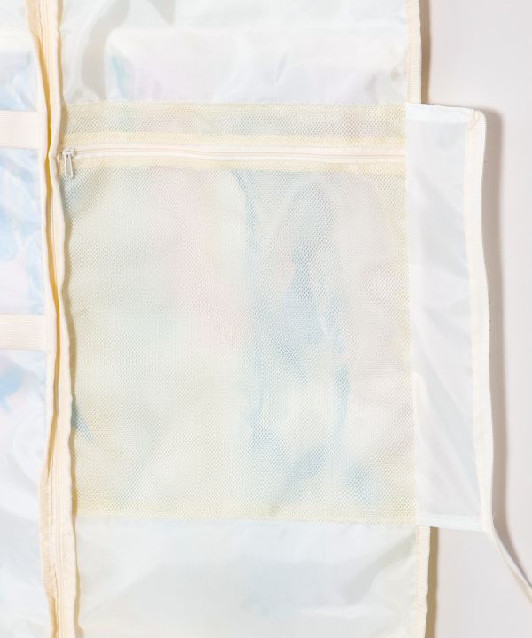 人気の'Mighty Su'アートが描かれた、ポリエステル素材のガーメントバッグ。トロピカルイラストレーター「マイティ・スー」の華やかなレイ柄が魅力的なデザインです。ドレスを最大5着収納できるゆとりのサイズに、メッシュポケットやクリップ用バンド、ハンガー通し穴など機能性も充実。ダンサーにうれしい、実用性とデザイン性を兼ね備えた一品です。