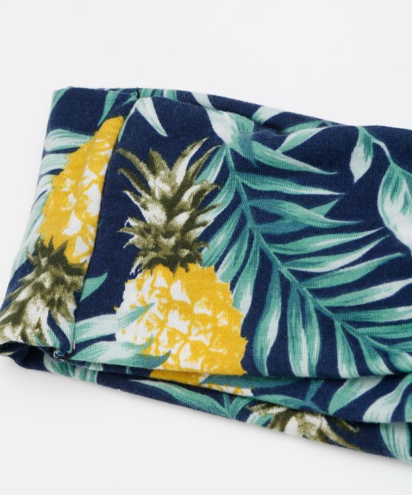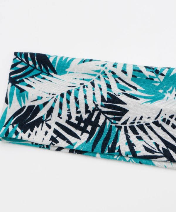 南国の植物柄が華やかなヘアバンドはクロスデザインで頭にフィットしやすく、レッスンや日常使いにも活躍。やわらかな素材感で長時間つけても快適。コーディネートのアクセントとして、フラの練習やリゾートスタイルにおすすめです。