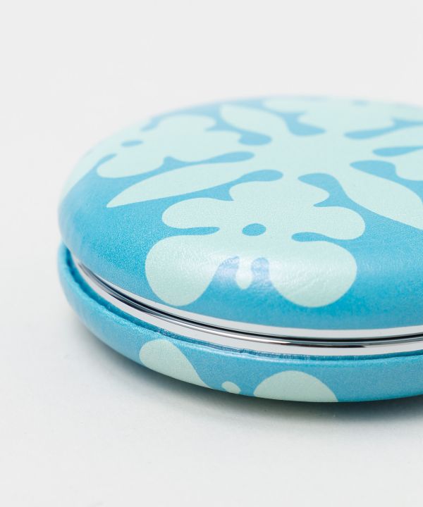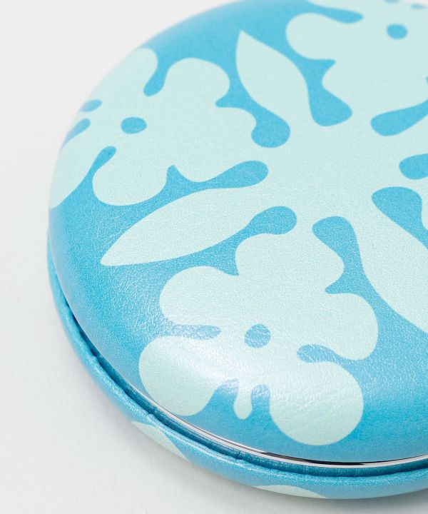 マカロンのような丸いフォルムが愛らしいコンパクトミラー。手のひらサイズで持ち運びしやすく、二面鏡のうち一面は拡大鏡付き。華やかなハワイ柄が気分を上げてくれ、フラのメイク直しや日常使いにもぴったりのアイテムです。