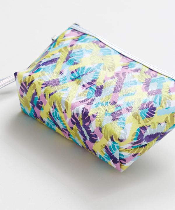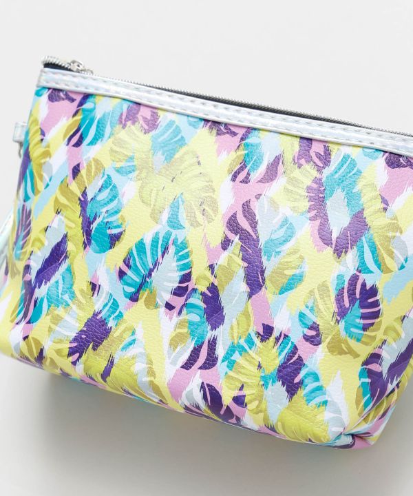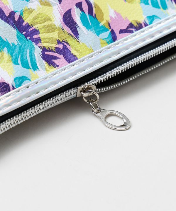 色鮮やかなモンステラ柄とホログラム調の艶感が南国ムード漂うポーチ。手首に掛けられるストラップ付きで持ち運びも便利。マチ付きで見た目以上の収納力があり、コスメや小物整理にも最適なアイテムです。