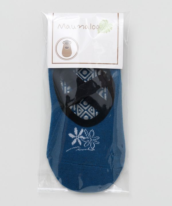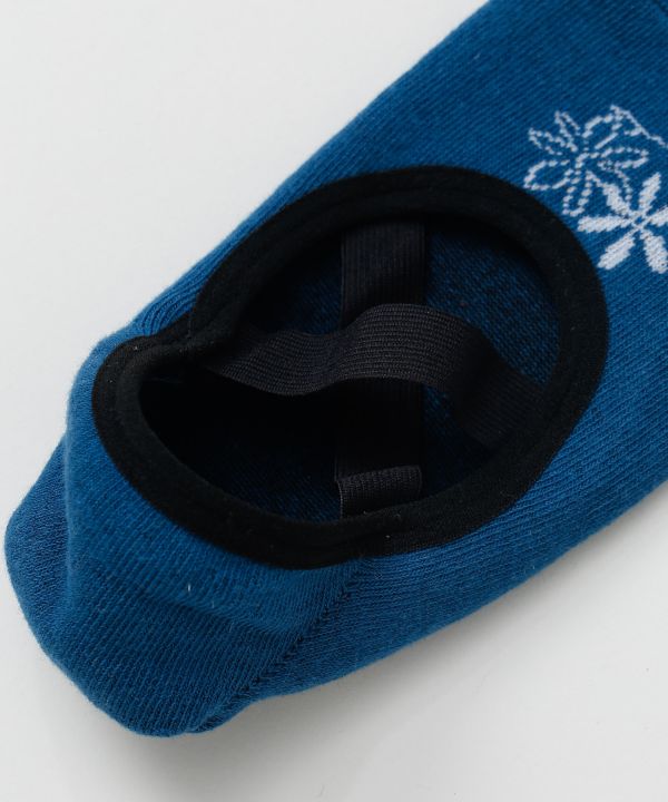 足元を華やかに彩るオリジナル刺しゅう入りレッスンソックス。クロスゴム仕様で脱げにくく、裏面の滑り止めが安定した動きをサポート。幾何学模様のソールデザインと豊富なカラーバリエーションで、フラや室内練習をおしゃれに楽しめます。