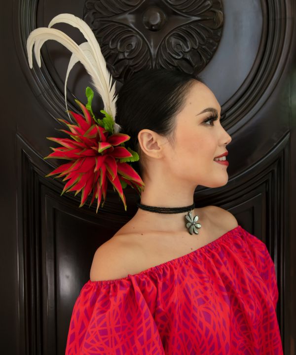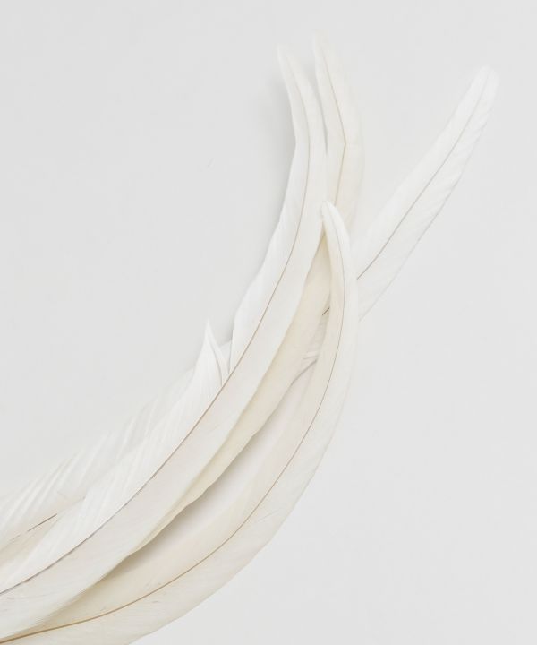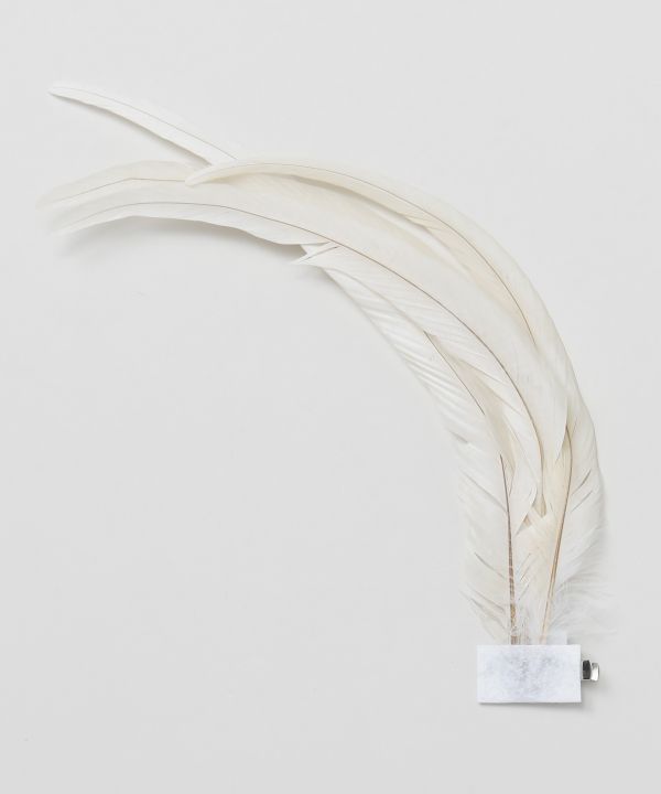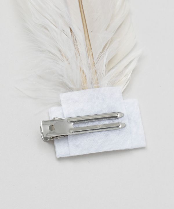 繊細なリアルフェザーを使用したフェザークリップは、軽やかに流れるフォルムがステージで美しく舞うデザイン。髪に沿うような流線が横顔を引き立て、動きに合わせて優雅な存在感を演出します。