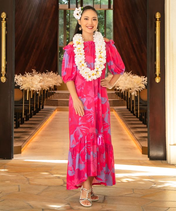立体感のあるプルメリアをふんだんにあしらったボリュームレイ。遠くからでも目を引く華やかさで、ステージの表情を一層豊かに演出します。