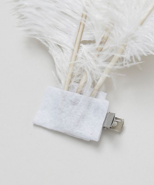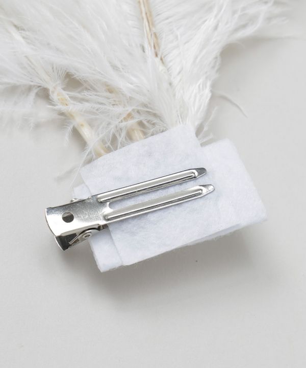 迫力のあるロングフェザーが華やかに広がるフェザークリップ。リアルフェザーを使用。ステージ上でも圧倒的な存在感を放ち、動きに合わせて美しく揺れます。まとめ髪に添えるだけで装いを格上げし、ステージの表情を一層豊かに演出します。