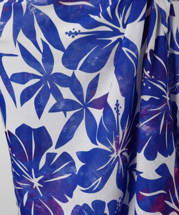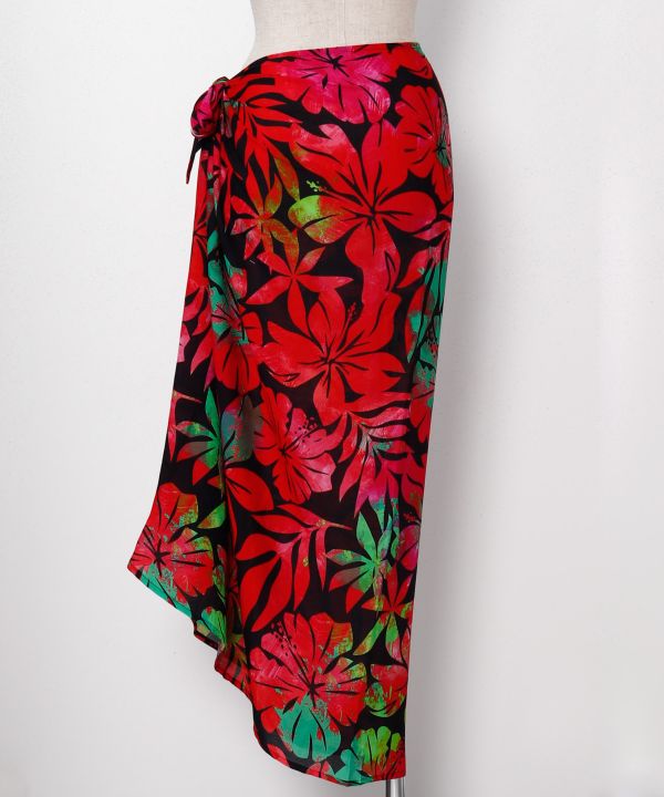 ポリネシアンボタニカル柄にグラデーションの躍動感が映えるパレオスカート。結ぶだけで美しく着こなせ、丈調整も自在。スカートやワンピースとしても着回せる多機能デザインで、早着替えやレッスン、移動時にも重宝するアイテムです。