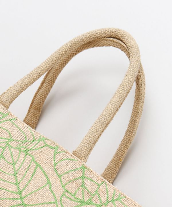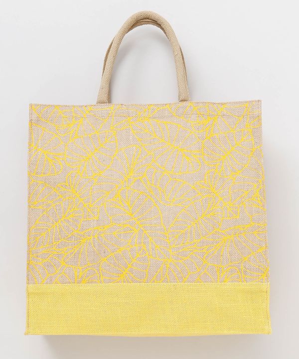 タロリーフ柄がナチュラルな風合いを引き立てるジュート素材のトートバッグ。しっかりとしたマチ付きで収納力があり、レッスンやお出かけ、エコバッグとしても活躍。クッション性のある持ち手で手に優しく、使い勝手の良さも魅力です。