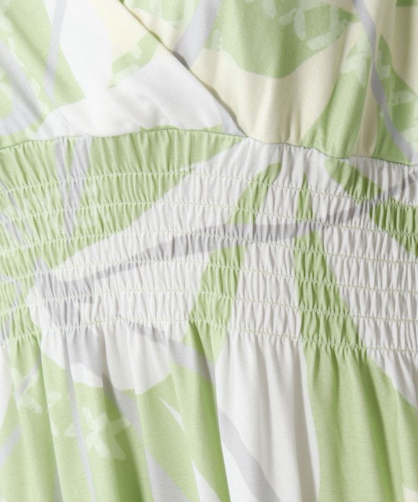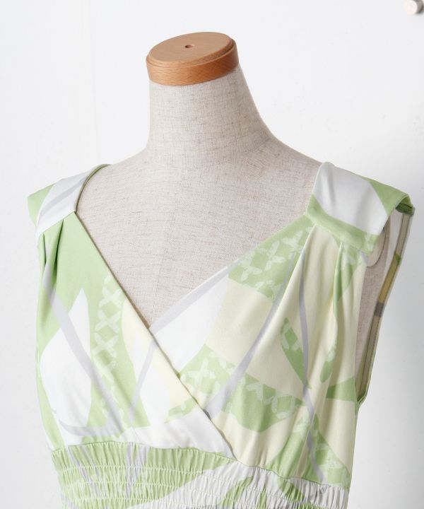 カシュクールの上半身がすっきりと美しいシルエット。切替えにより胸元が広がりすぎず程よく安定したVネックに仕上がります。高めのウエスト切替えでスタイルアップ。程よいフレア感で動きやすく上品なデザインです。足下からの着脱が可能です。メイクやヘアスタイルを崩しません。