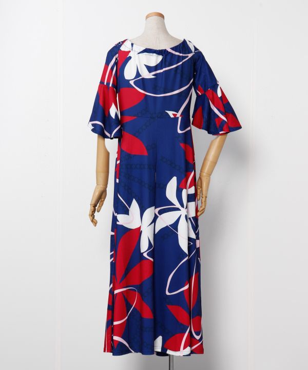 美しく咲く大輪のティアレが印象的なアートワーク。強く大胆なイメージに感じる清らかさと凛とした気品。シンプルなトライバルとのコンビネーションは伝統とモダンさの融合を表現したタヒチアンデザインです。素材:ポリエステル92% ポリウレタン8%