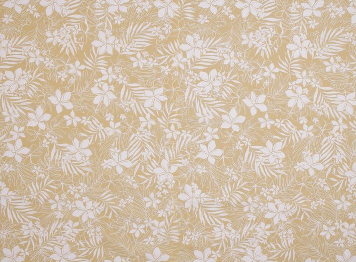 ハワイを代表する花=プルメリア。多くのメレにも登場するこの花をアレンジしやすいワントーンカラーの中に描きました。