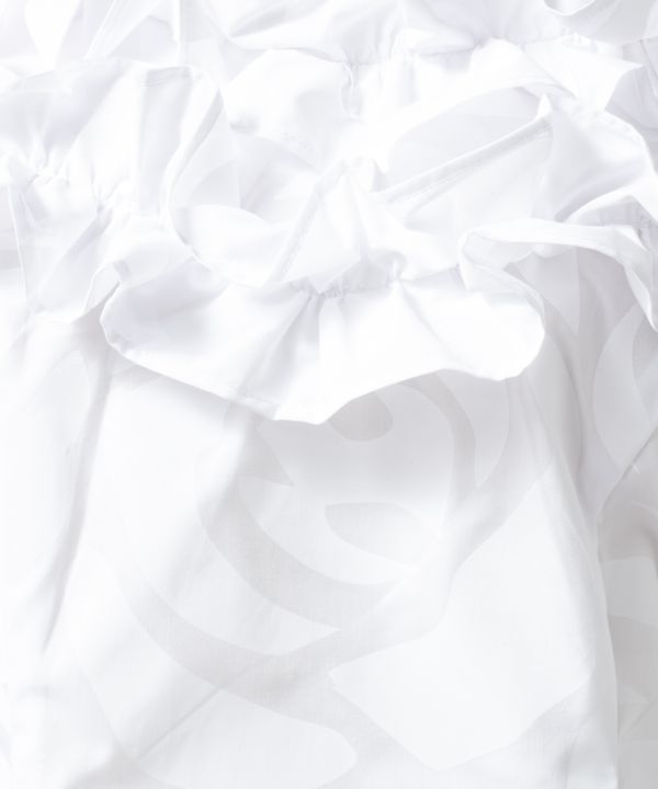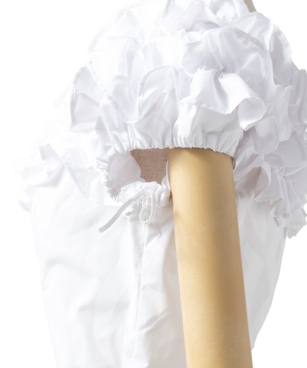 胸元フリルが優美なブラウス。※背面はコンシールファスナーです。無地ブロード生地、ハワイアンファブリックからお選びいただけます。