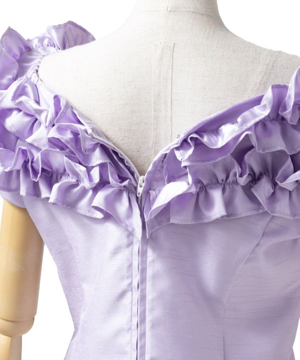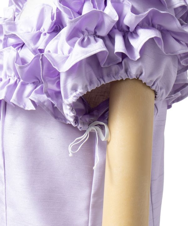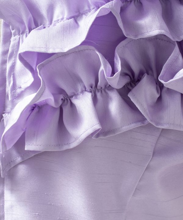 胸元フリルが優美なブラウス。※背面はコンシールファスナーです。シャンタンを使用してより華やかかつ上品なブラウスに仕立てました。