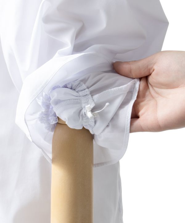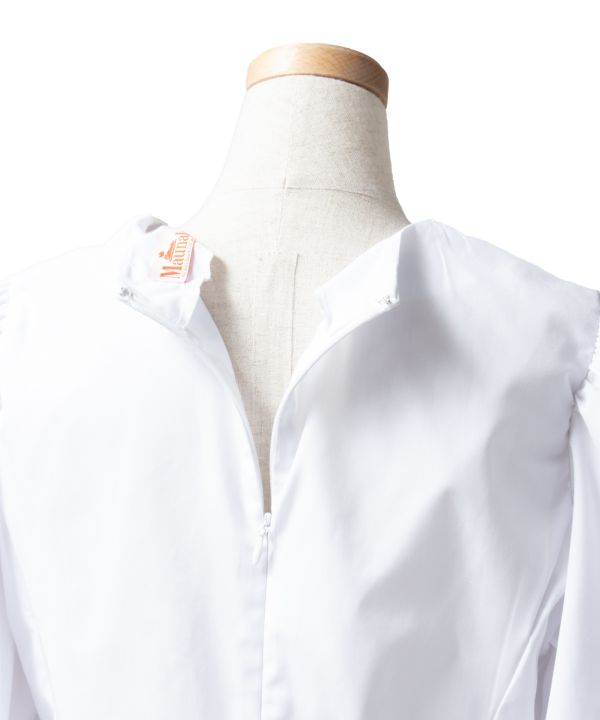 贅沢なボリュームの袖が特徴的なバルーンスリーブブラウス。レイに合わせやすいようにネック周りと身頃はすっきりシンプルにしつつ、袖山からお袖はふんわりとエレガントに仕上げました。袖口は調整可能なゴム入り。お好きな位置で調整でき、また袖口部分を内側に織り込むアレンジも可能です。※背面はコンシールファスナーです。無地ブロード生地、ハワイアンファブリックからお選びいただけます。