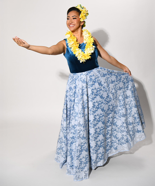 【使用生地】上身頃:クリスタルストレッチベロア、スカート(外側):シアーフラワー、スカート(内側)TCブロード