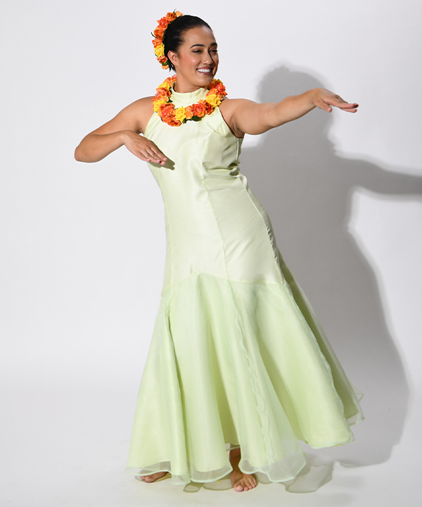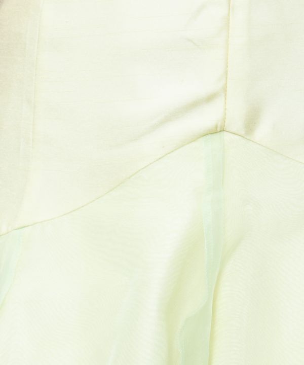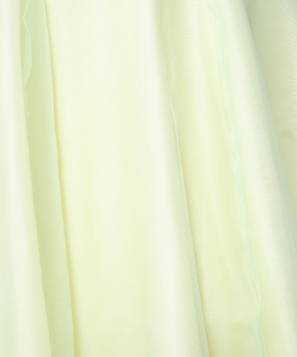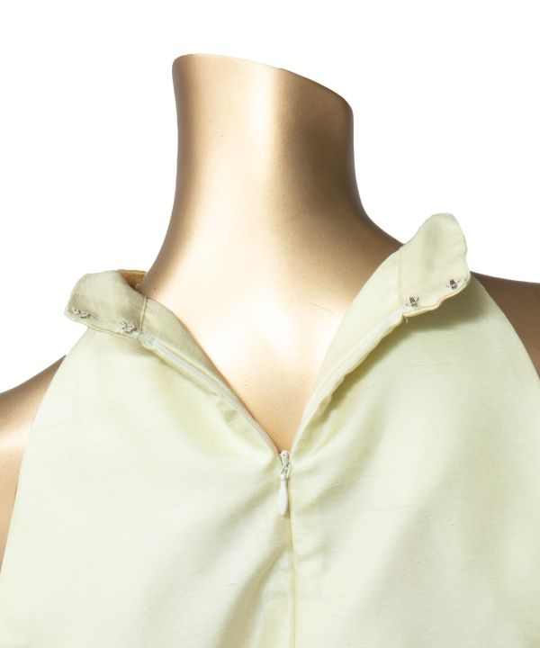 アメリカンスリーブとスタンドカラーがすっきりとモダンでスタイリッシュな印象のスタイル。タイトめシルエットの上身頃と対象的に、豊かに広がる切替下のバランスがドラマチック。切替下部分に透け感のある生地(レース・オーガンジーなど)を重ねてお作りするデザインです。※重ねる生地部分がご不要な場合は「CDNS035」をご覧ください。