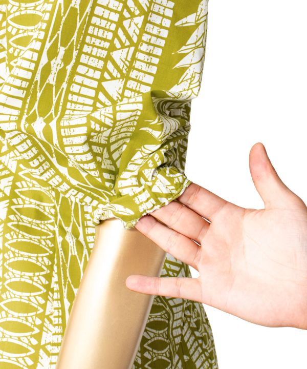 ふんわりと長めのお袖がエレガントなデザイン。袖口はベルトとギャザーを組み合わせて、上品に見えつつ使いやすさを追求した仕様になっています。