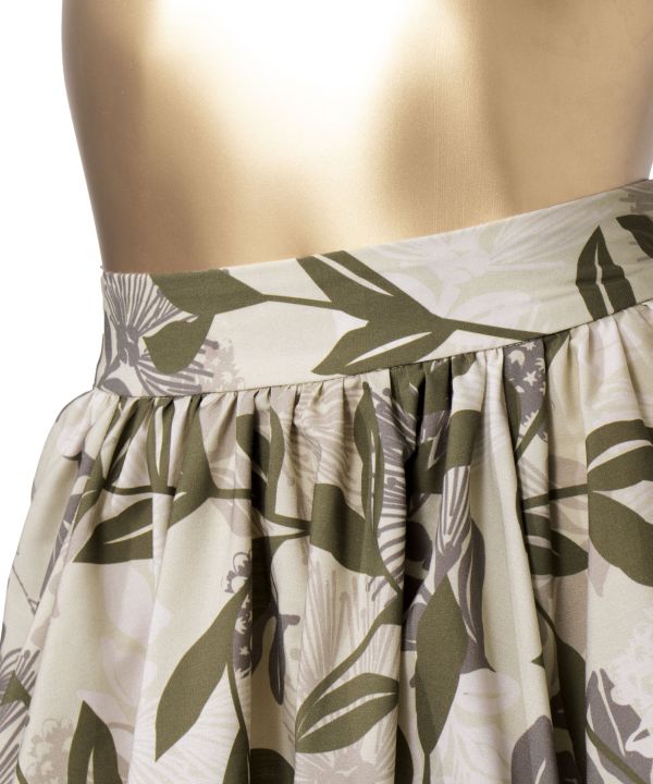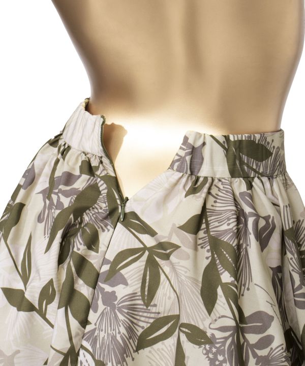 すっきりとしたウエストラインから大きく広がるシルエットのスカート。ウエストには背面全体にゴムを施しており、対応サイズの広さに安心感があります。1着はもっておきたいスタンダード・スカートです。
