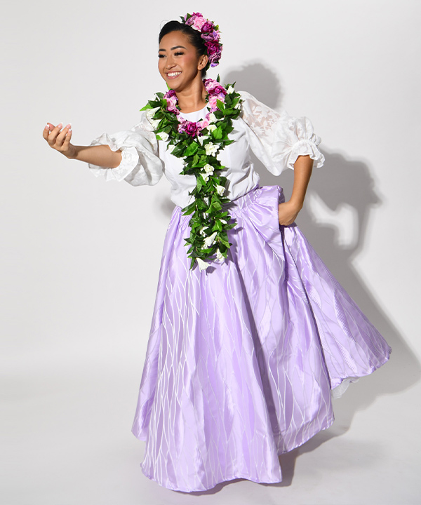 すっきりとしたウエストラインから大きく広がるシルエットのスカート。ウエスト前面はベルト仕様ですっきりと、背面には調整可能なゴムを施しており、対応サイズの広さもに安心感があります。1着はもっておきたいスタンダード・スカートです。
