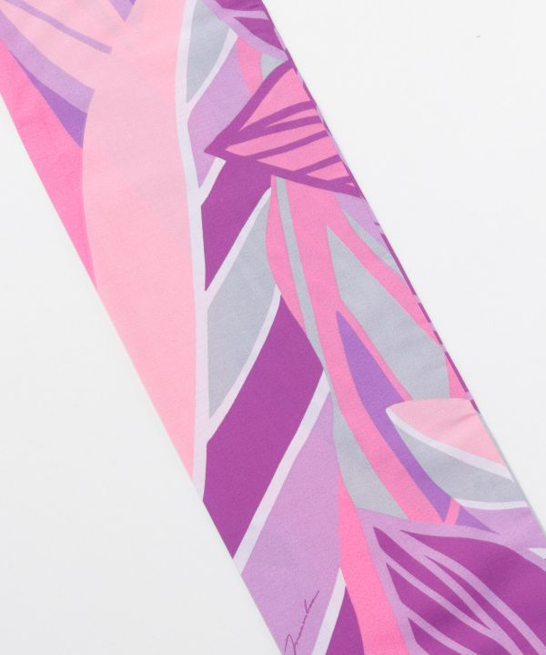 マウナロアオリジナルのハワイアンファブリックを使用したパウスカートケース。共生地のシュシュ付き。2つ折、3つ折にしてシュシュで留めるとコンパクトにパウを収納できます。同じ生地を使用したパウとお揃いにするのもおすすめです。